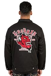 Men Jacket,Red,Devil,Hot,Rod,Car,Quilt,Lined,Chino,Jacket,,Grease,Gas,Glory,,Lucky,13,(XL)